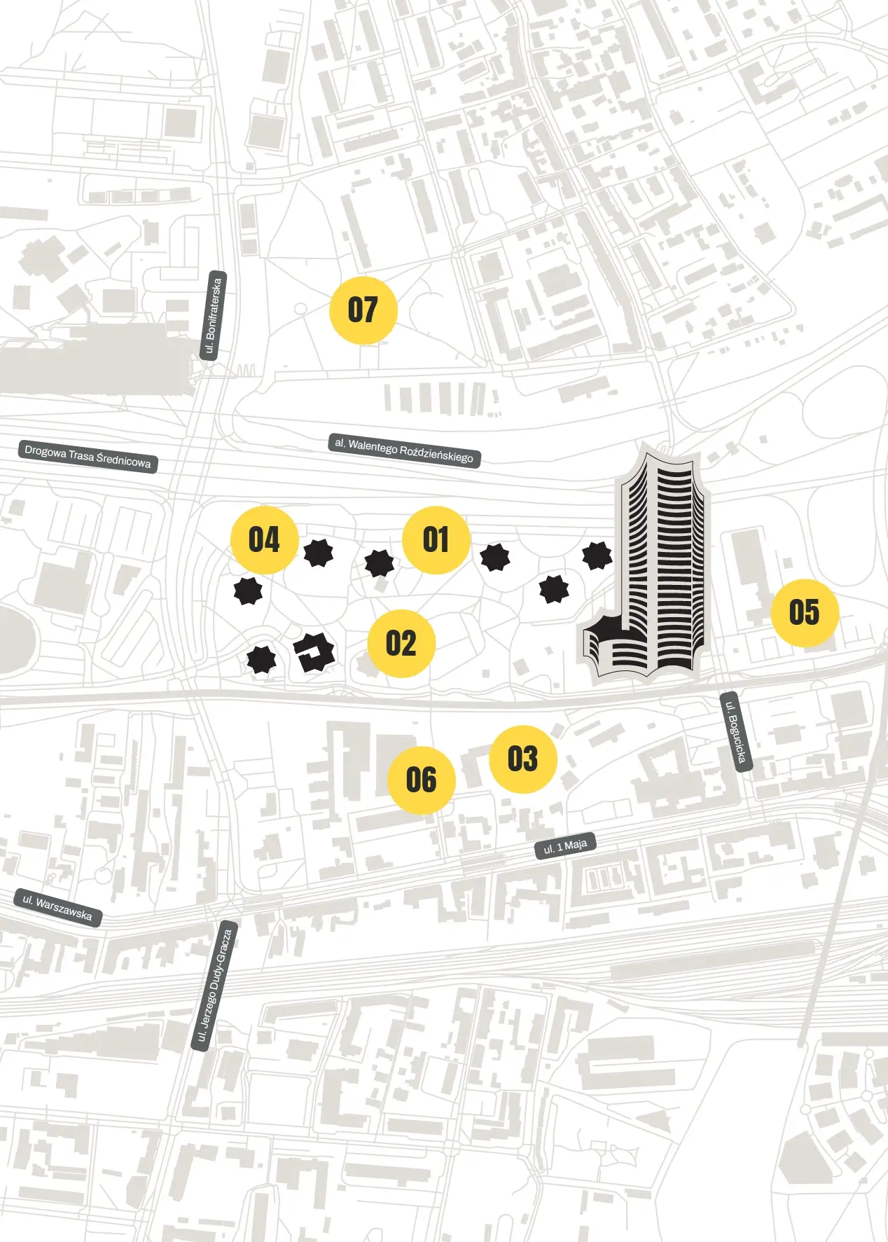 New Star is being developed on Bogucicka Street, directly next to a symbol of Silesian courage and belief in dreams — the Walenty Roździeński Housing Estate, widely known as the “Stars.” It is the same Zawodzie district, with the same urban energy and the same modernist boldness that, in the 1970s, propelled the concept of residential living into an entirely new orbit. This is an address that attracts not only through its symbolic significance, but also through everyday convenience. Universities, schools, kindergartens, and parks are all within a short walking distance, while the city’s key cultural and business destinations can be reached in around 10 minutes by car.