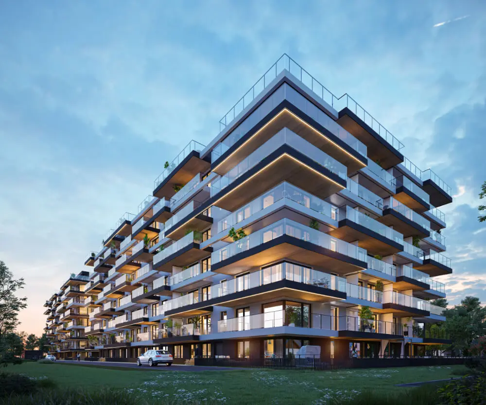Rezydencja Świerkowa to dwa wyjątkowej klasy budynki zaprojektowane w duchu najnowszych trendów. Duże balkony, narożne przeszklenia i podświetlana elewacja dodają uroku i klasy. Wszystkie mieszkania są bardzo ustawne, dzięki czemu stworzysz tu swoje wymarzone miejsce do życia. To prawdziwa architektoniczna perełka na mieszkaniowej mapie Radomia.